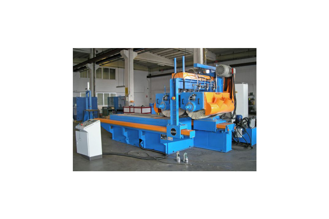 La macchina è costituita da un bancale sul quale è montato il carro porta unità pulitrici che scorre su guide longitudinali in acciaio; la corsa e la velocità sono regolabili. I rulli pulitori, oltre al movimento di rotazione, sono muniti di dispositivo per l’oscillazione assiale regolabile, in modo da permettere di incrociare il taglio degli utensili, al fine di ottenere una finitura omogenea ed efficace.